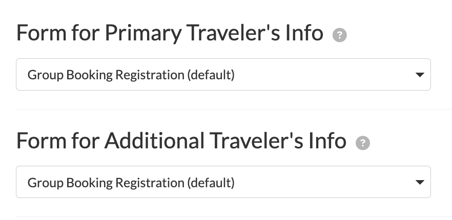 You can choose from any of our built-in form templates or custom form templates you've built yourself, and you can choose the same form for both options. Our "Group booking registration (default)" form gives you a great default option, and can also be used as a starting point to build your own custom form.