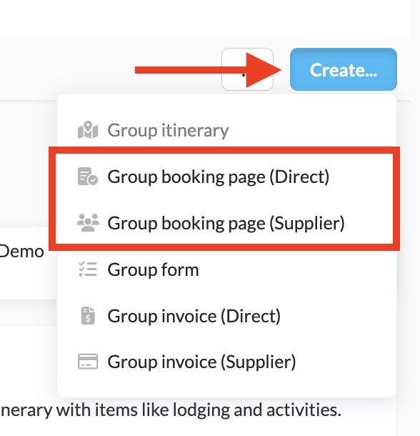 Much like invoices, group booking pages can collect authorizations (supplier) or direct payments (direct). You must choose which option to use when you create the page, and this cannot be changed later. For a refresher on these two options, click here