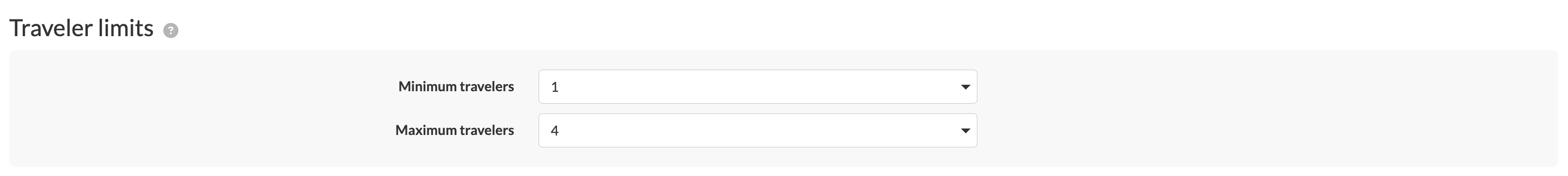 The minimum and maximum number of travelers per room for your group. This setting will apply to all packages for this group booking page, so if you're allowing a maximum of double occupancy in some rooms and triple occupancy in other rooms, you'll want to choose a maximum of three here.