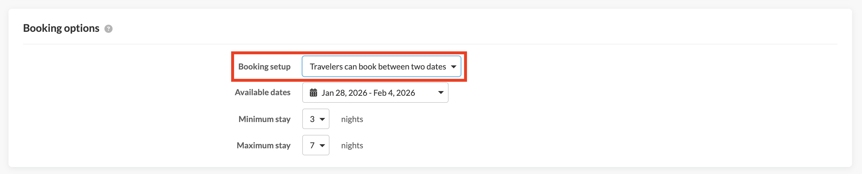 From here you can select the date range available and set a minimum and maximum night stay.