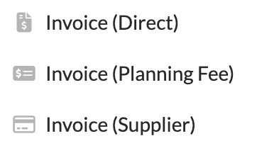 Use an Invoice (Planning Fee) to charge a planning fee and only a planning fee. This invoice works just as a direct invoice, however, funds are delivered directly to your bank account. While we won't be going over the setup for this invoice type in this guide, you can learn more about this process here.Â