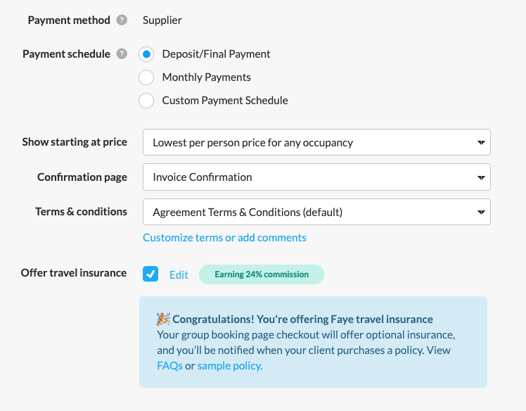 Because your Travel Services Agreement form may include signatures, this form type might not be best suited for all the travelers booking through a Group Booking page.