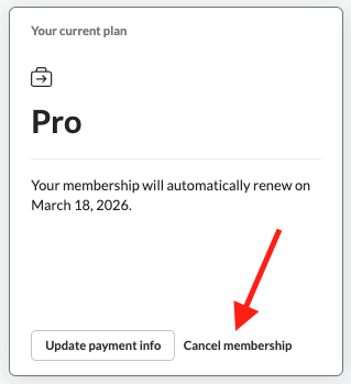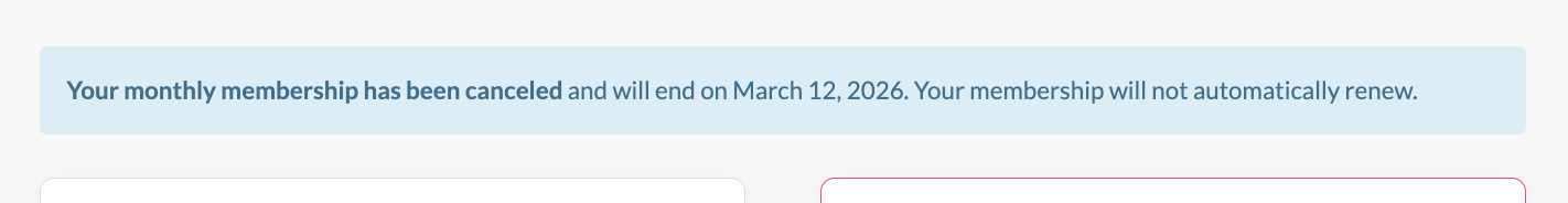 To confirm your membership has been canceled, navigate to Settings → Membership or refresh the page. A banner will appear at the top saying your subscription has been canceled: