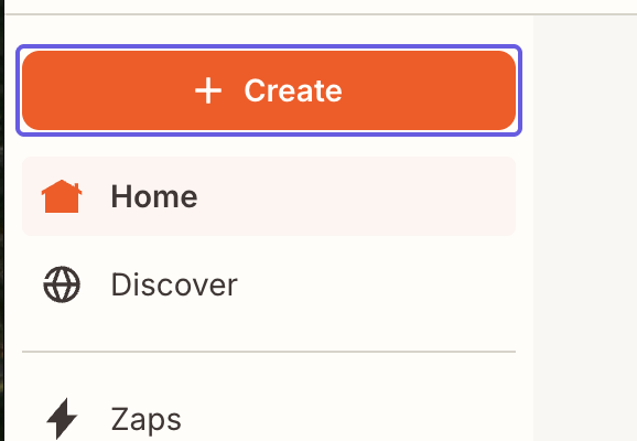 - Click Create->Zaps