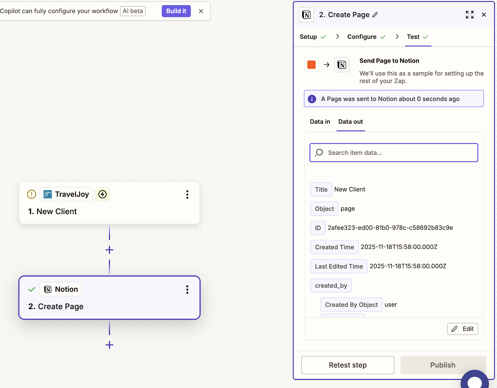 - If everything looks good, publish the zap!