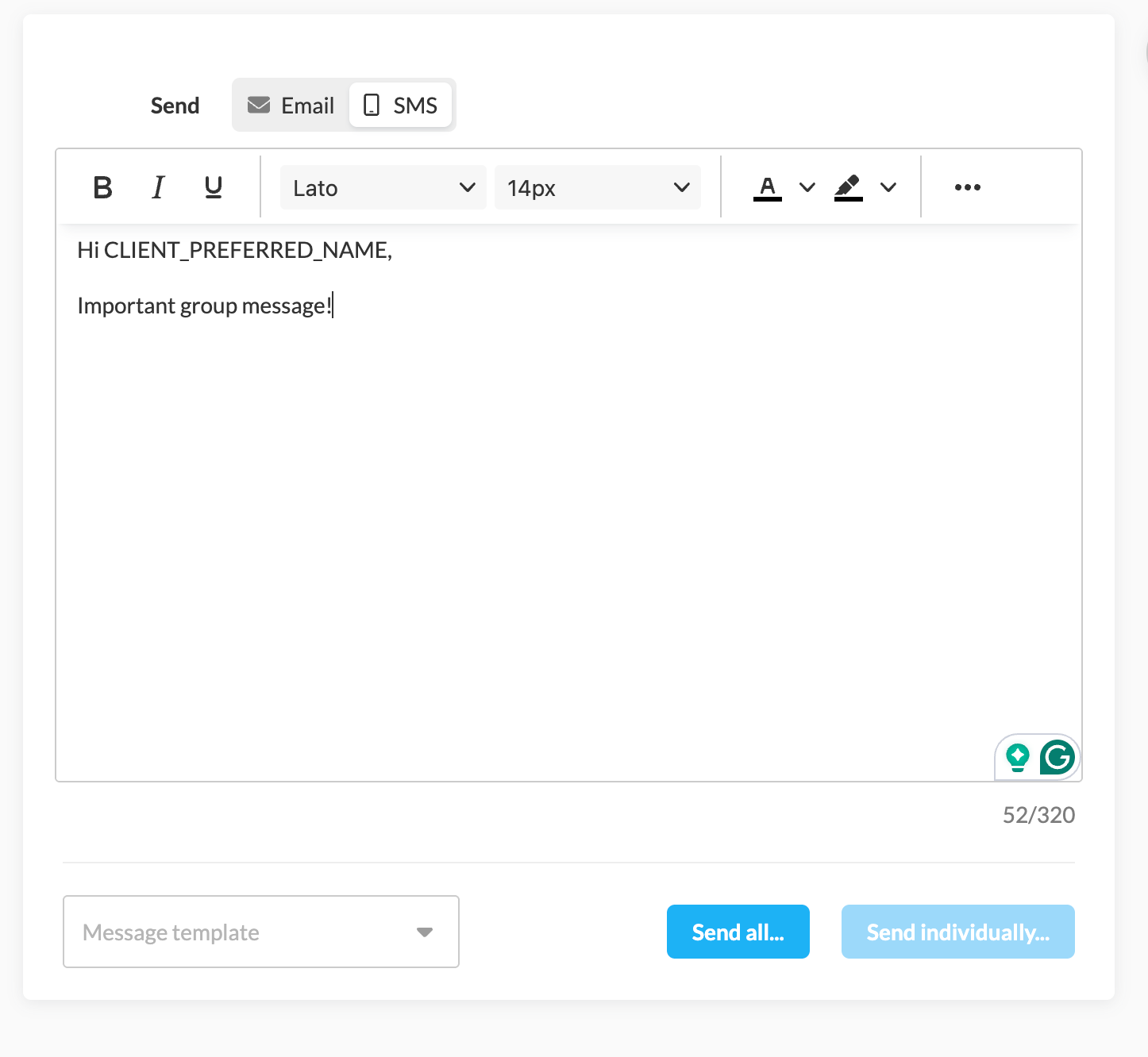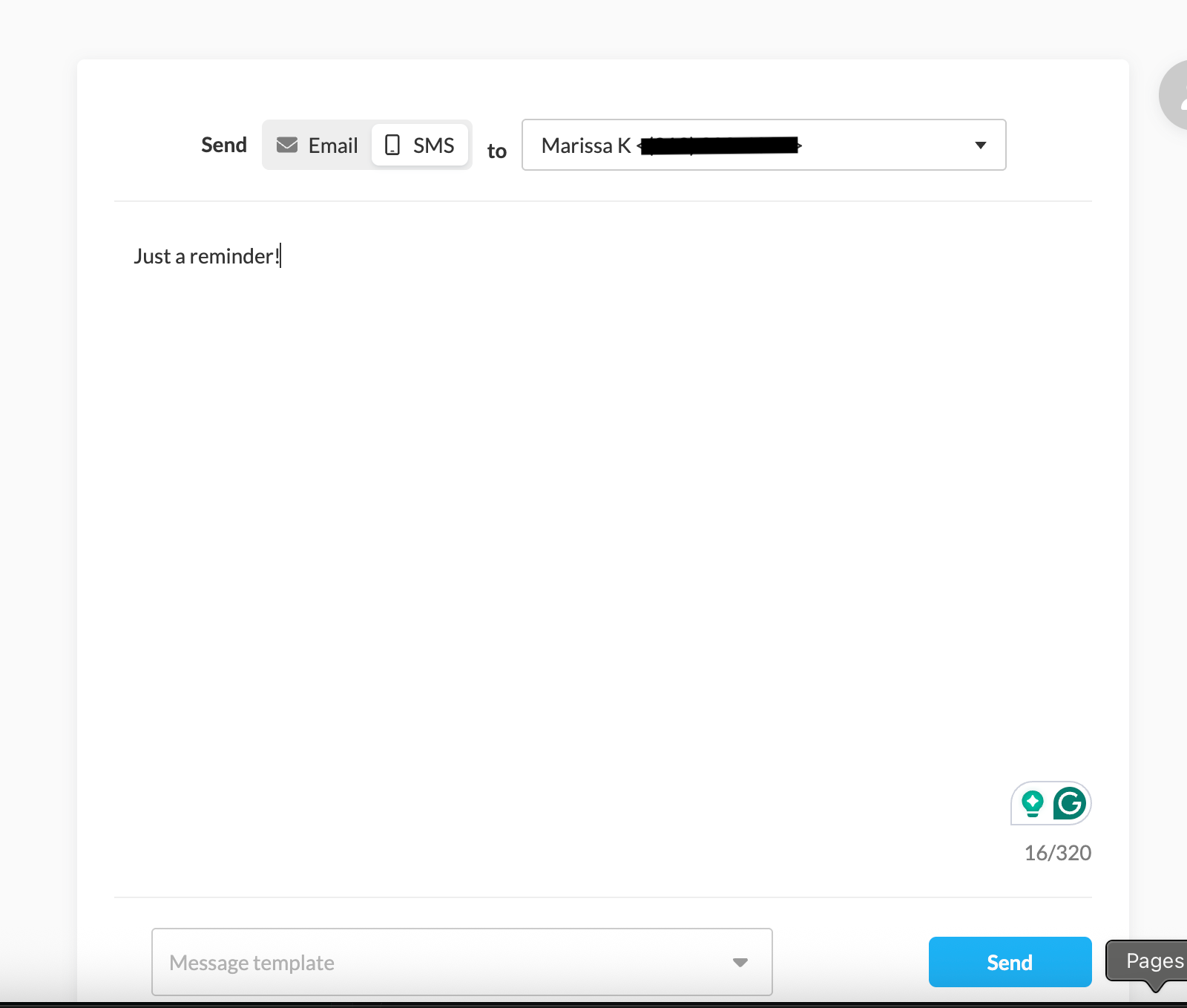 Note: You cannot send a message to an international number, images, forms, proposals, or invoices from this box, even if you choose a template that mentions it. To send a form or email, you must use the blue Create button. Click here to learn more.Â