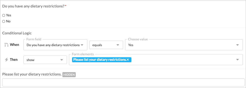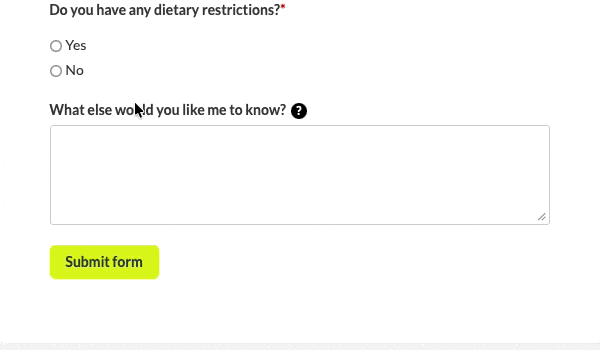Conditional logic allows you to show or hide certain questions on a form based on how a client answers previous questions. This helps you keep your forms shorter, more relevant, and tailored to each client. It’s especially helpful when collecting optional details like dietary restrictions, insurance preferences, or accessibility needs.