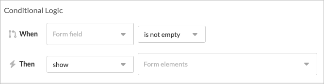 After you add and configure the conditional logic field, you’ll see a summary of the rule showing the selected When and Then conditions.
