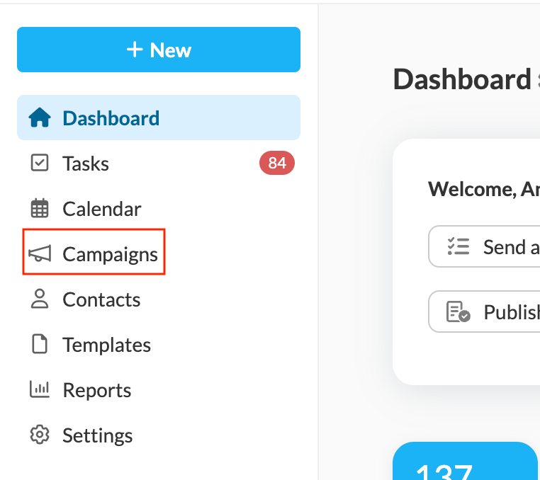 First, navigate to the settings bar on the left side of your screen and select "Campaigns" from the list.Â