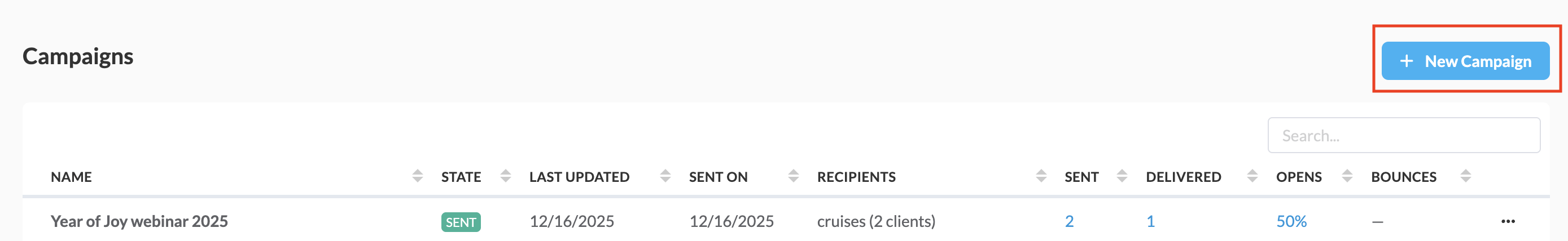 You will see a record of all your previous campaigns, and in the top-right corner, you will have the option to create a new campaign.