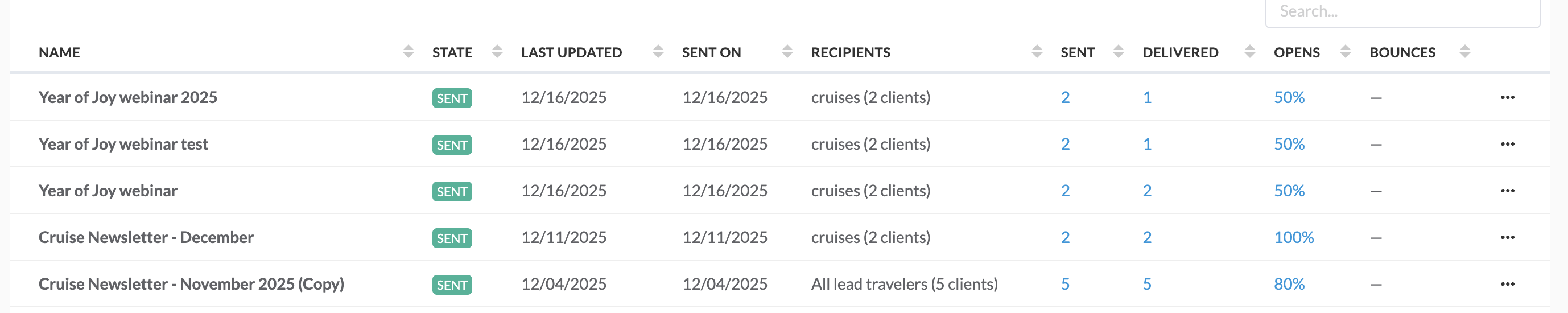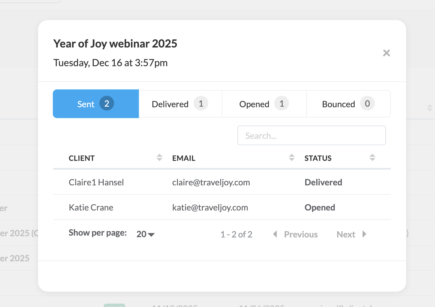 You can now send email marketing messages to your clients directly from TravelJoy. With TravelJoy Email Campaigns, you can create, schedule, and send emails without needing a separate platform, making it easy to communicate with your clients in one place.