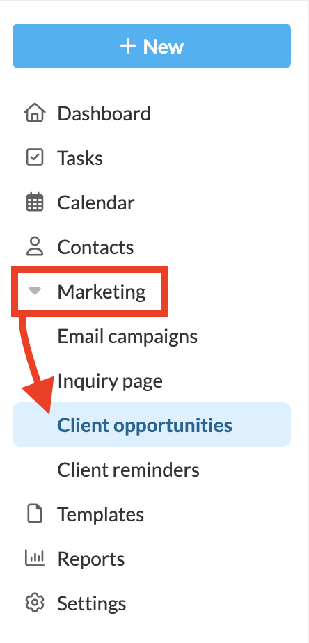 To view your opportunities, navigate to the Client opportunities tab under Marketing within your dashboard: