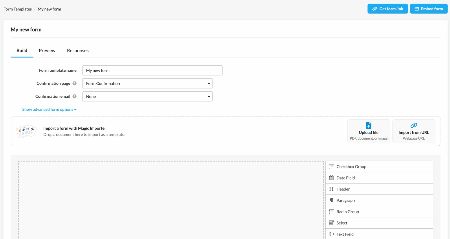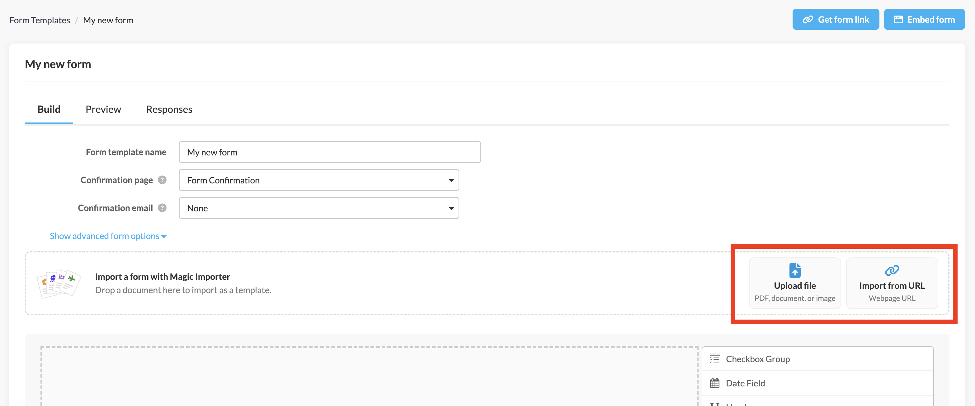 You can upload a URL, PDF, or even a screenshot of the form you would like to recreate. Magic importer will take it from there and build the form for you in just seconds.